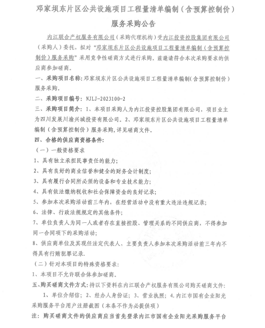 鄧家壩東片區(qū)公共設(shè)施項目工程量清單編制(含預(yù)算控制價)服務(wù)采購公告
