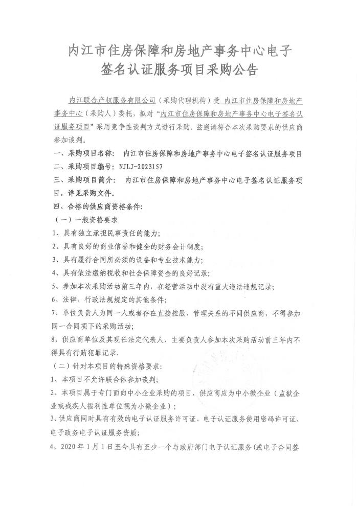 內(nèi)江市住房保障和房地產(chǎn)事務(wù)中心電子簽名認(rèn)證服務(wù)項目采購公告