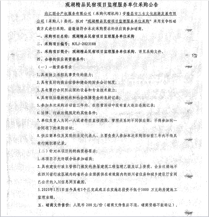 觀湖精品民宿項(xiàng)目監(jiān)理服務(wù)單位采購公告