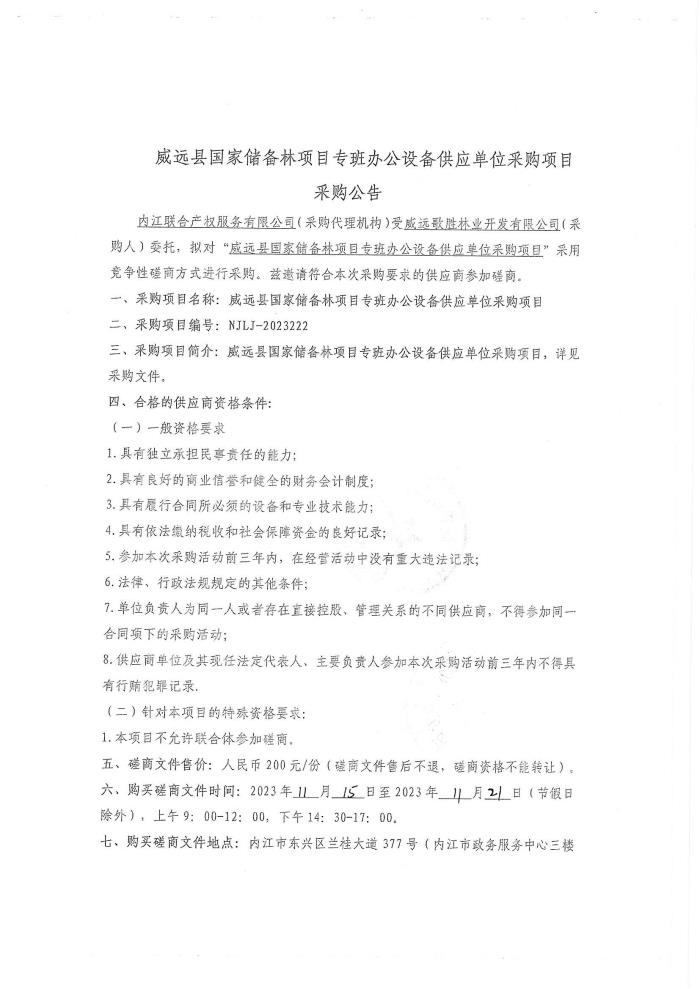 威遠(yuǎn)縣國(guó)家儲(chǔ)備林項(xiàng)目專班辦公設(shè)備供應(yīng)單位采購(gòu)項(xiàng)目采購(gòu)公告