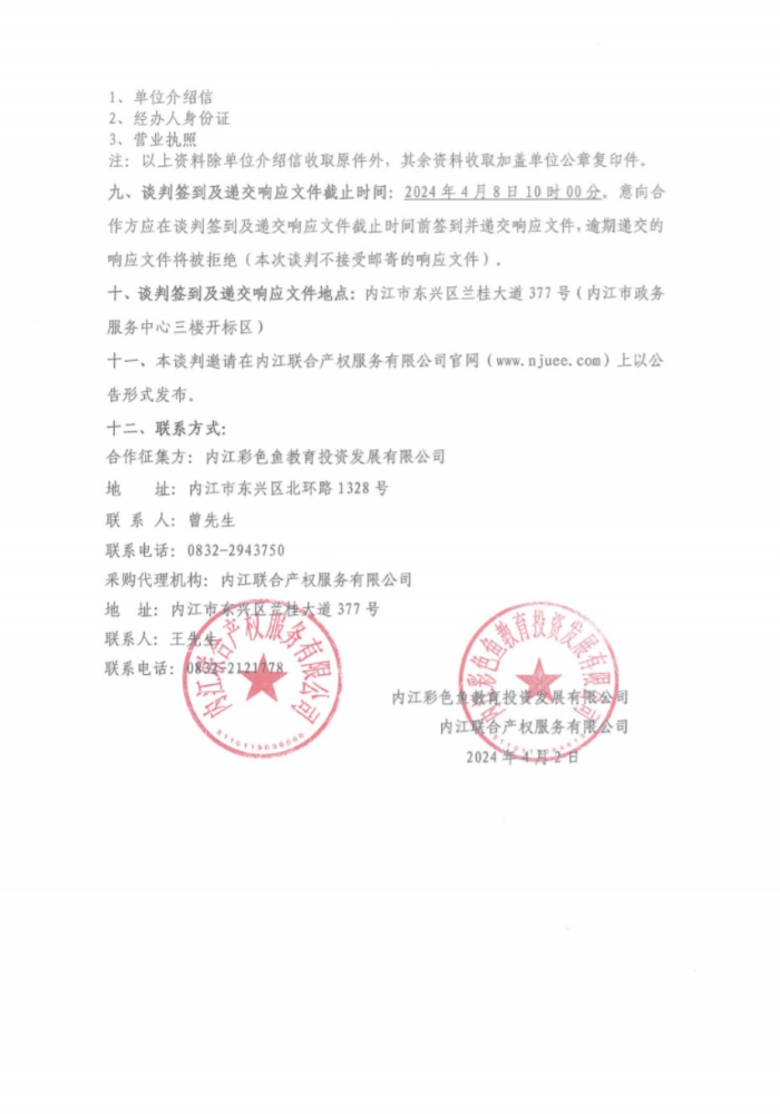 彩色魚魚小藝少兒素質教育培訓基地體育類合作談判項目(第二次)采購公告