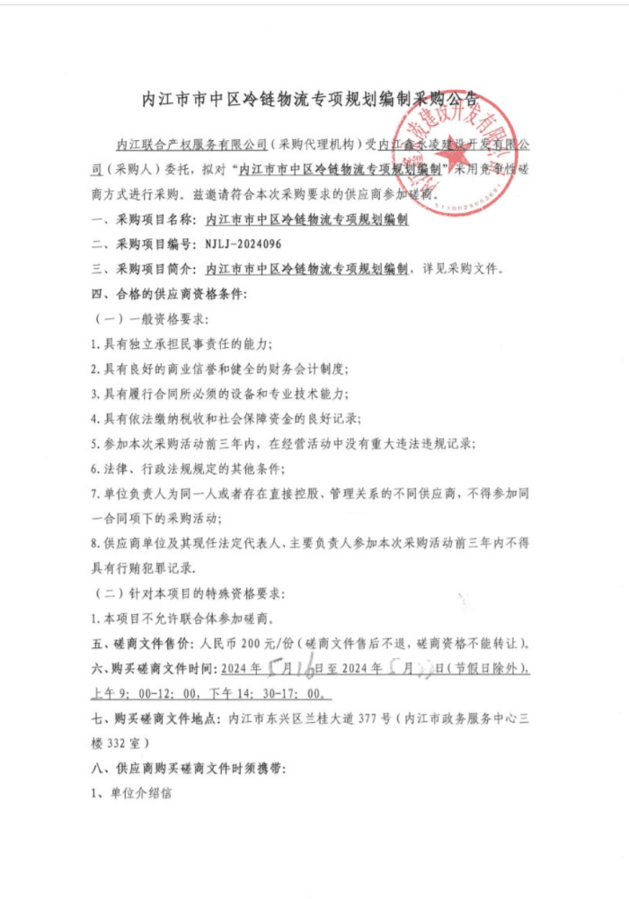 內(nèi)江市市中區(qū)冷鏈物流專項規(guī)劃編制采購公告