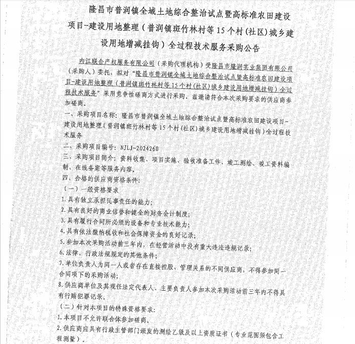 隆昌市普潤鎮(zhèn)全域土地綜合整治試點暨高標準農(nóng)田建設項目-建設用地整理(普潤鎮(zhèn)斑竹林村等15個村(社區(qū))城鄉(xiāng)建設用地增減掛鉤)全過程技術服務采購公告