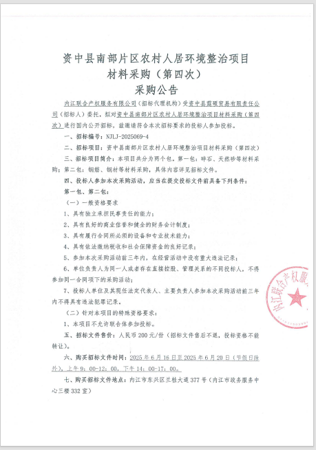 資中縣南部片區(qū)農(nóng)村人居環(huán)境整治項目材料采購(第四次)