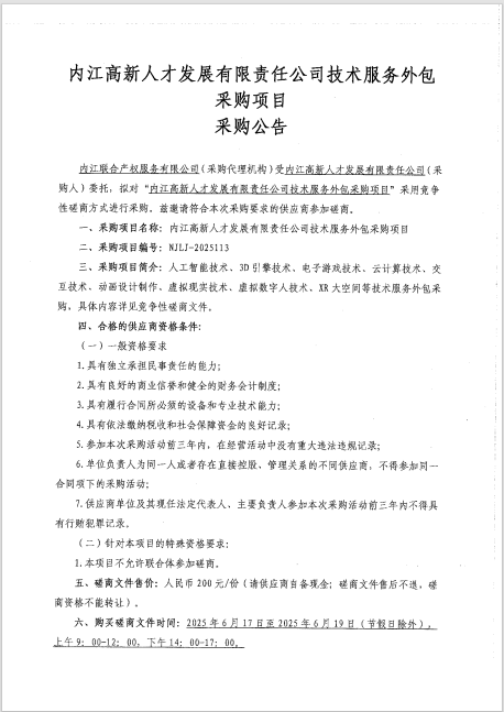 內(nèi)江高新人才發(fā)展有限責任公司技術(shù)服務外包采購項目采購公告