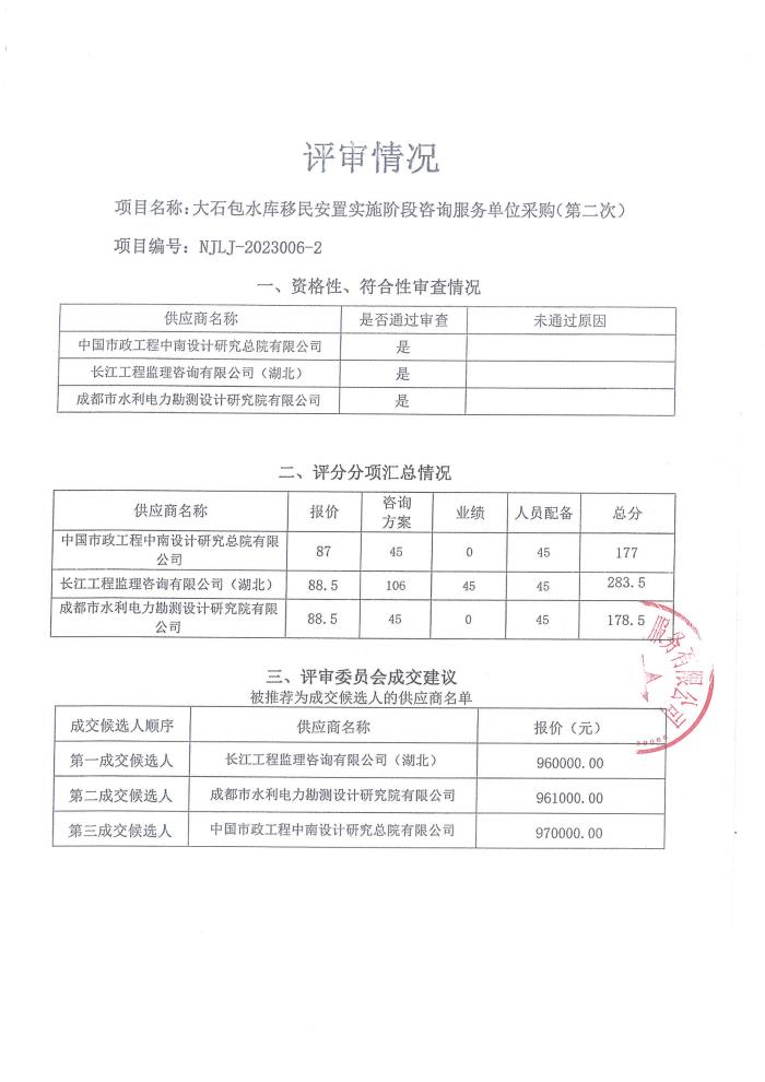 大石包水庫(kù)移民安置實(shí)施階段咨詢服務(wù)單位采購(gòu)(第二次)