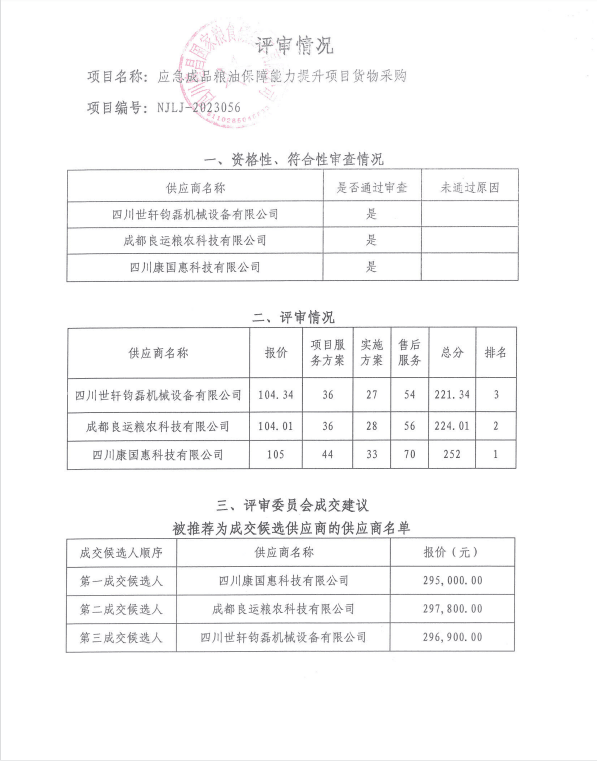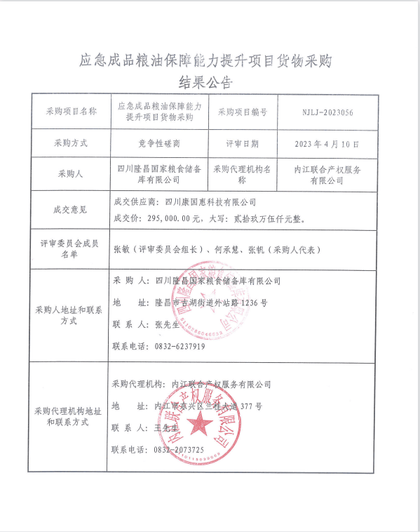 應(yīng)急成品糧油保障能力提升項(xiàng)目貨物采購(gòu)結(jié)果公告