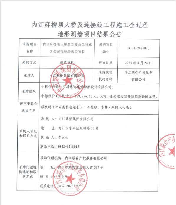 內(nèi)江麻柳壩大橋及連接線工程施工全過程地形測繪項目結(jié)果公告