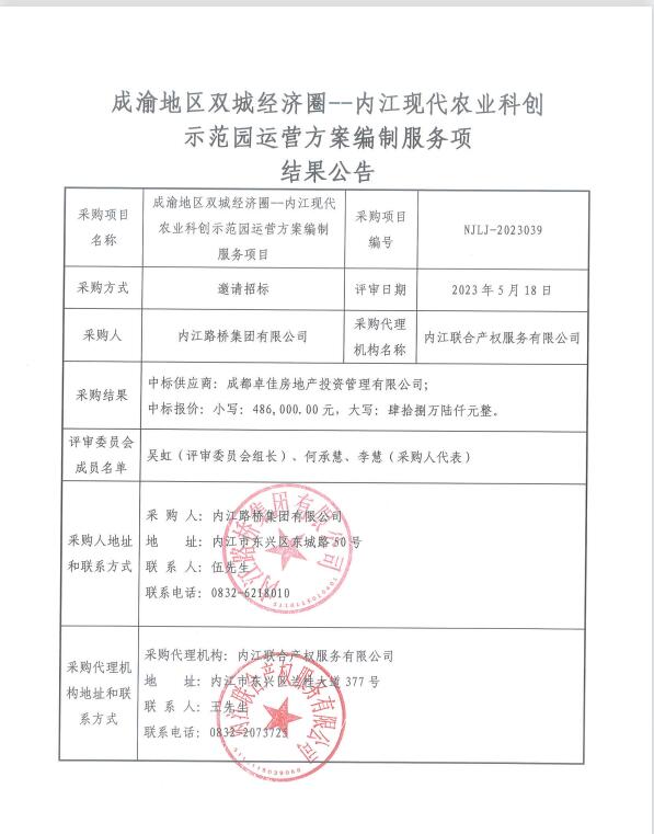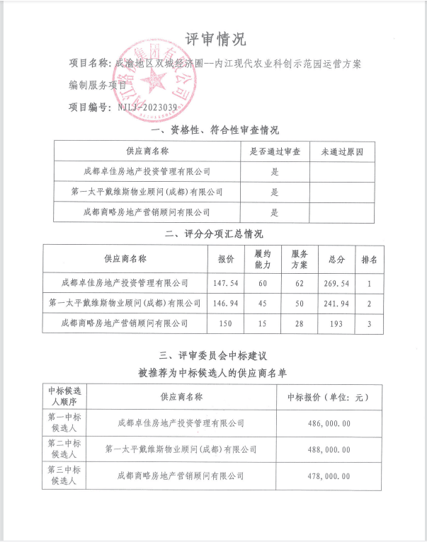 成渝地區(qū)雙城經(jīng)濟(jì)圈--內(nèi)江現(xiàn)代農(nóng)業(yè)科創(chuàng)示范園運(yùn)營方案編制服務(wù)項(xiàng)目結(jié)果公告