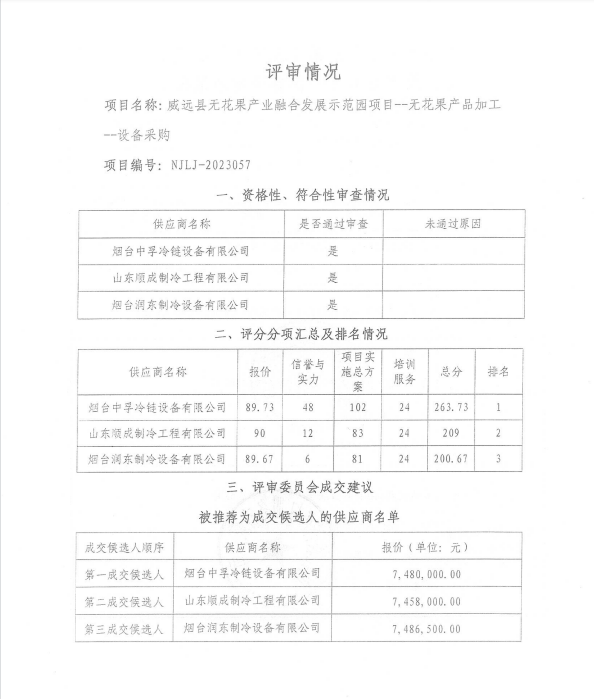 威遠縣無花果產(chǎn)業(yè)融合 發(fā)展示范園項目--無花果 產(chǎn)品加工--設(shè)備采購結(jié)果公示