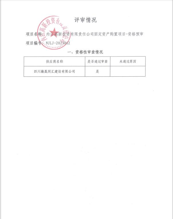 內(nèi)江高新投資有限責(zé)任公司固定資產(chǎn)購置項目資格預(yù)審結(jié)果公告