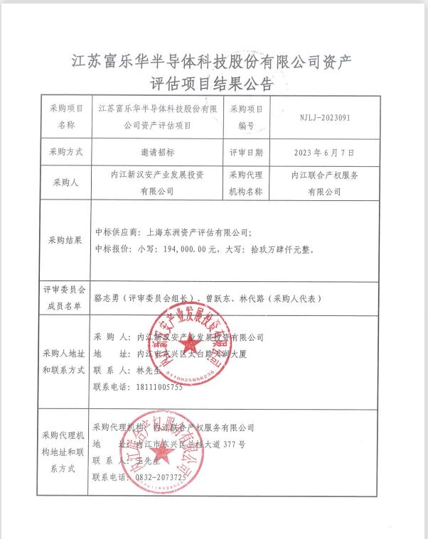 江蘇富樂華半導(dǎo)體科技股份有限公司資產(chǎn)評(píng)估項(xiàng)目結(jié)果公告