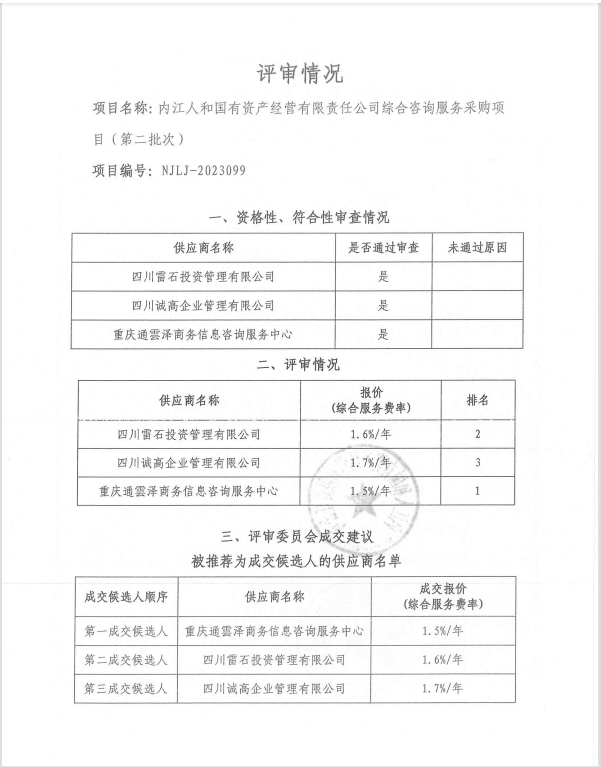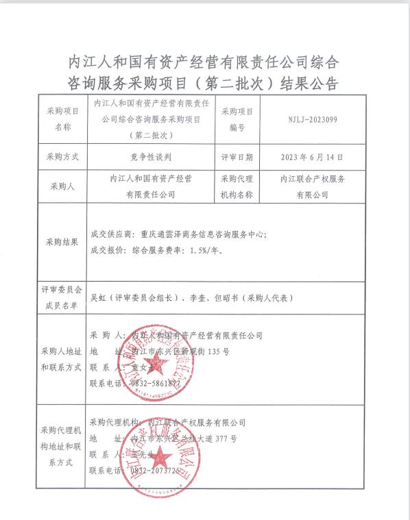 內(nèi)江人和國(guó)有資產(chǎn)經(jīng)營(yíng)有限責(zé)任公司綜合咨詢服務(wù)采購(gòu)項(xiàng)目(第二批次)結(jié)果公告
