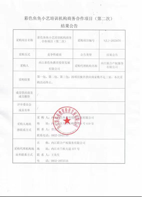 彩色魚魚小藝培訓(xùn)機(jī)構(gòu)商務(wù)合作項(xiàng)目(第二次)結(jié)果公告