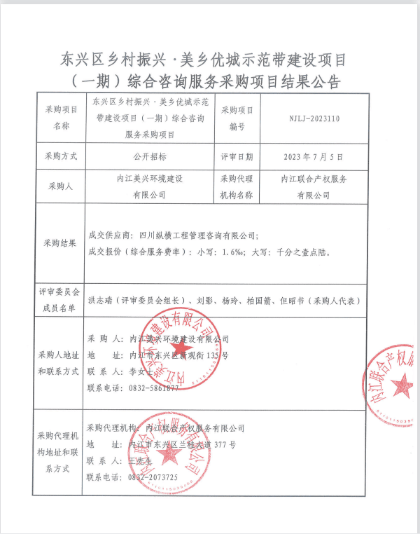 東興區(qū)鄉(xiāng)村振興·美鄉(xiāng)優(yōu)城示范帶建設(shè)項(xiàng)目(一期)綜合咨詢服務(wù)采購(gòu)項(xiàng)目結(jié)果公告