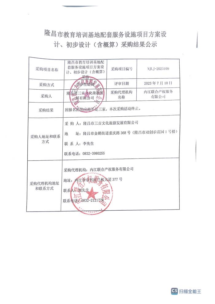 隆昌市教育培訓(xùn)基地配套服務(wù)設(shè)施項(xiàng)目方案設(shè)計(jì)、初步設(shè)計(jì)(含概算)采購(gòu)結(jié)果公示