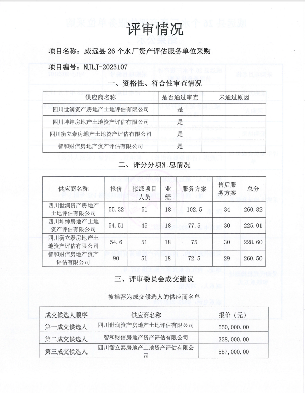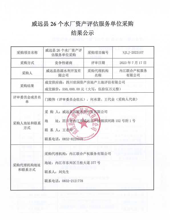 威遠(yuǎn)縣26個(gè)水廠資產(chǎn)評(píng)估服務(wù)單位采購(gòu)結(jié)果公示