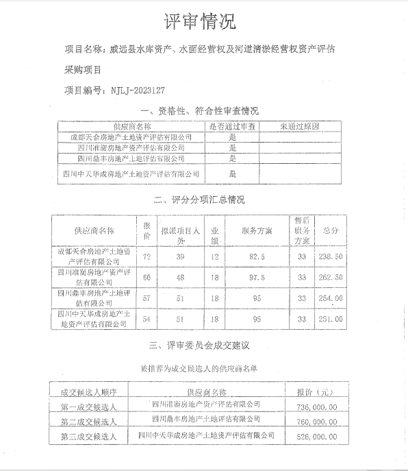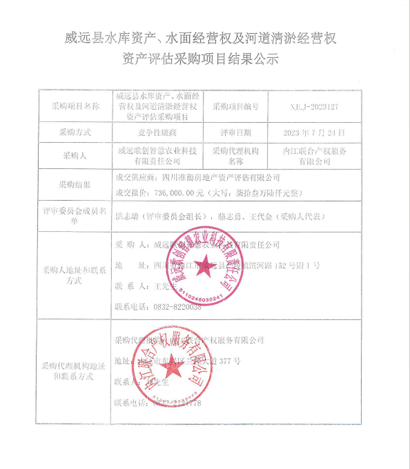 威遠(yuǎn)縣水庫(kù)資產(chǎn)、水面經(jīng)營(yíng)權(quán)及河道清淤經(jīng)營(yíng)權(quán)資產(chǎn)評(píng)估采購(gòu)項(xiàng)目結(jié)果公示