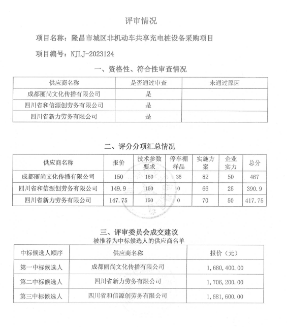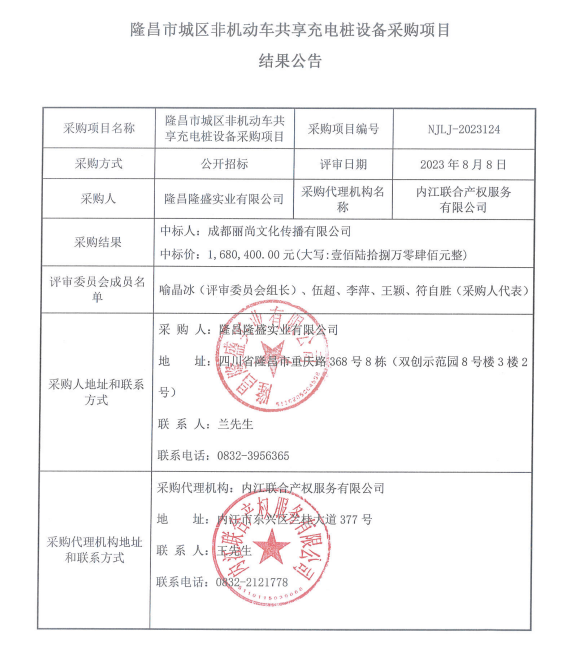 隆昌市城區(qū)非機動車共享充電樁設(shè)備采購項目結(jié)果公告