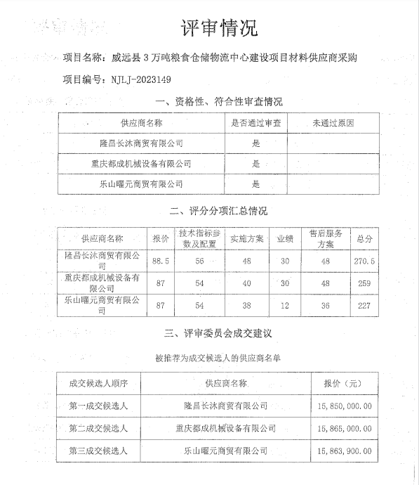 威遠(yuǎn)縣3萬噸糧食倉儲物流中心建設(shè)項(xiàng)目材料供應(yīng)商采購結(jié)果公示