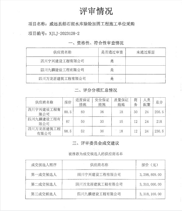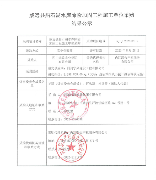 威遠(yuǎn)縣船石湖水庫除險(xiǎn)加固工程施工單位采購結(jié)果公示