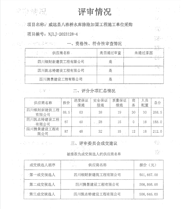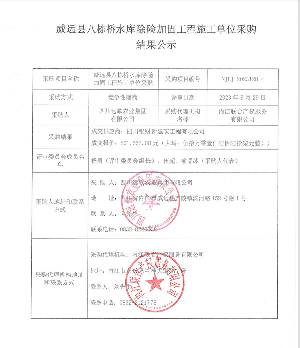威遠(yuǎn)縣八棟橋水庫(kù)除險(xiǎn)加固工程施工單位采購(gòu)結(jié)果公示