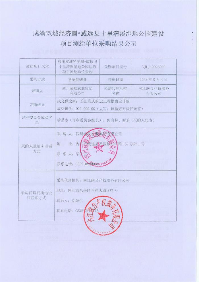 成渝雙城經(jīng)濟(jì)圈?威遠(yuǎn)縣十里清溪濕地公園建設(shè)項(xiàng)目測(cè)繪單位采購(gòu)結(jié)果公示