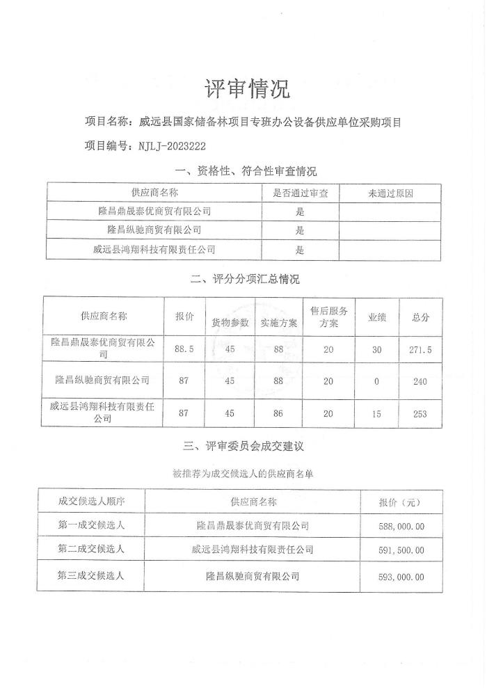 威遠(yuǎn)縣國(guó)家儲(chǔ)備林項(xiàng)目專班辦公設(shè)備供應(yīng)單位采購(gòu)項(xiàng)目結(jié)果公示