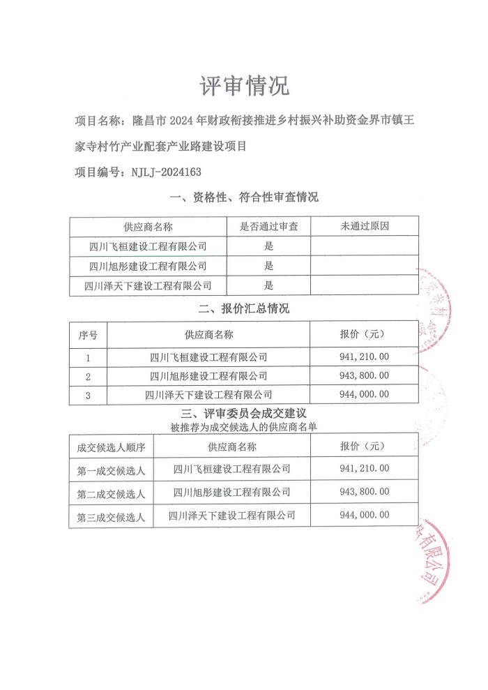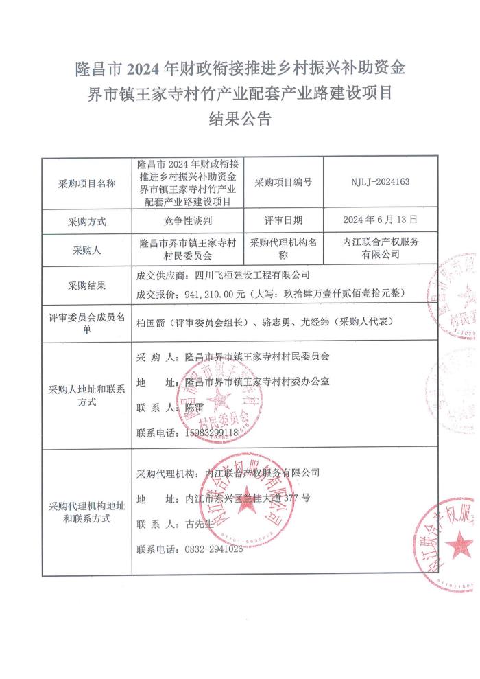 隆昌市2024年財政銜接推進鄉(xiāng)村振興補助資金界市鎮(zhèn)王家寺村竹產(chǎn)業(yè)配套產(chǎn)業(yè)路建設(shè)項目結(jié)果公告
