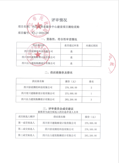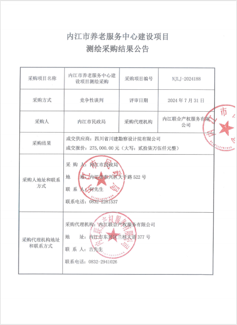 內(nèi)江市養(yǎng)老服務(wù)中心建設(shè)項目測繪采購結(jié)果公告