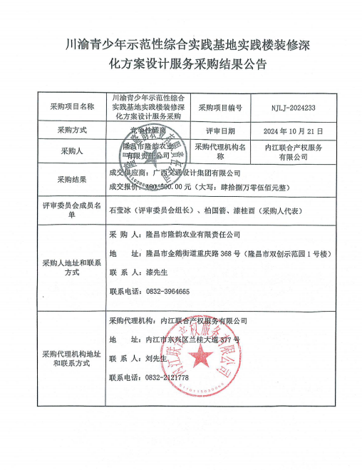 川渝青少年示范性綜合實(shí)踐基地實(shí)踐樓裝修深化方案設(shè)計(jì)服務(wù)采購(gòu)結(jié)果公告