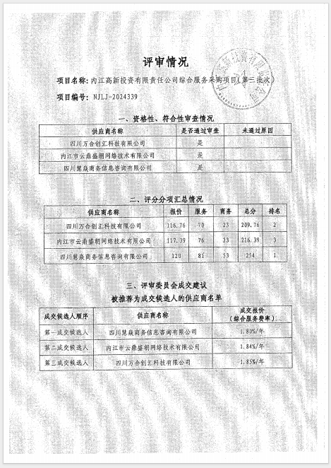 內(nèi)江高新投資有限責(zé)任公司綜合服務(wù)采購(gòu)項(xiàng)目(第三批次)結(jié)果公告