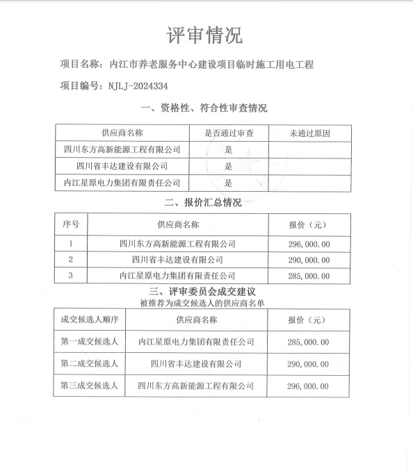 內(nèi)江市養(yǎng)老服務(wù)中心建設(shè)項(xiàng)目臨時(shí)施工用電工程結(jié)果公告