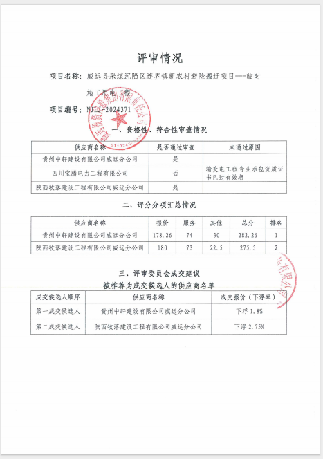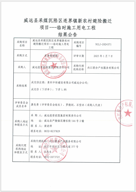 威遠(yuǎn)縣采煤沉陷區(qū)連界鎮(zhèn)新農(nóng)村避險搬遷項目---臨時施工用電工程結(jié)果公告