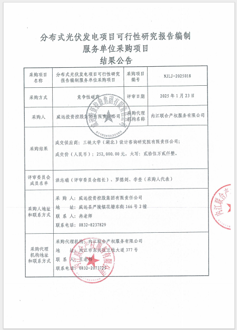 分布式光伏發(fā)電項(xiàng)目可行性研究報(bào)告編制服務(wù)單位采購項(xiàng)目結(jié)果公告