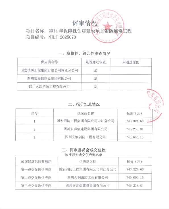 2014年保障性住房建設(shè)項目消防維修工程結(jié)果公告
