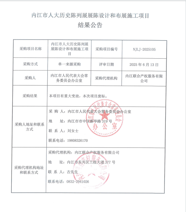 內(nèi)江市人大歷史陳列展展陳設(shè)計和布展施工項目結(jié)果公告