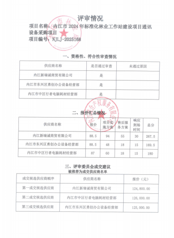 內(nèi)江市2024年標(biāo)準(zhǔn)化林業(yè)工作站建設(shè)項目通訊設(shè)備采購項目結(jié)果公告
