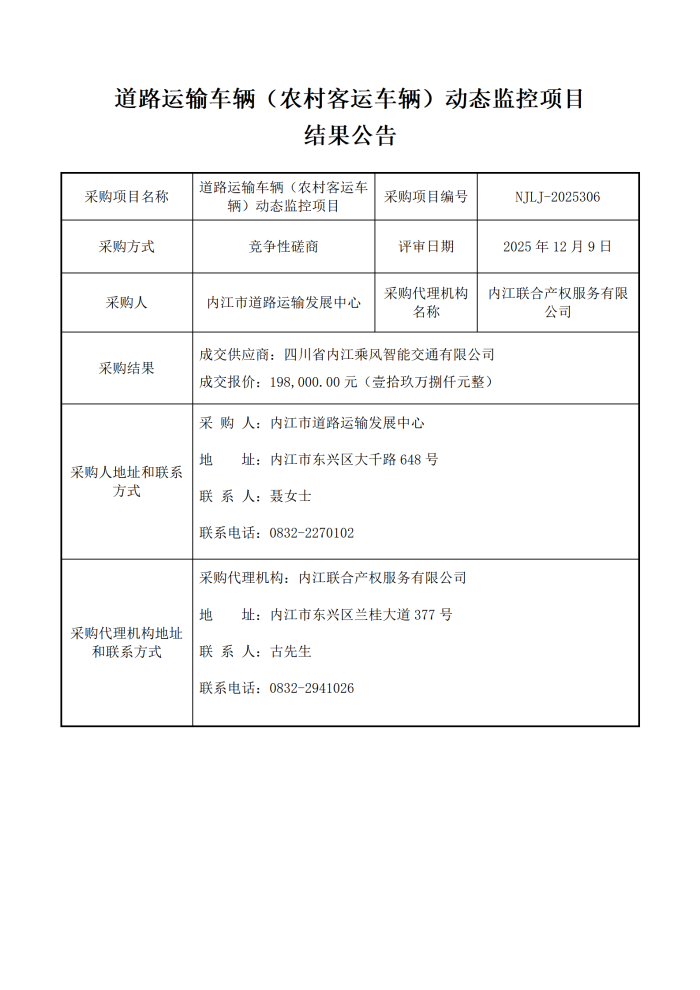 道路運(yùn)輸車(chē)輛(農(nóng)村客運(yùn)車(chē)輛)動(dòng)態(tài)監(jiān)控項(xiàng)目結(jié)果公告
