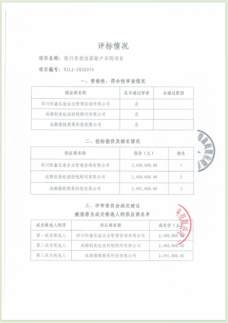 銀行存款結(jié)算賬戶采購項(xiàng)目結(jié)果公告